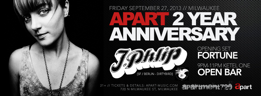 Would you like to open for J.PHLIP (dirtybird) and FORTUNE September 27 for the APART 2 YR party at Apartment 720? Then enter our mix contest! Please read the info below: